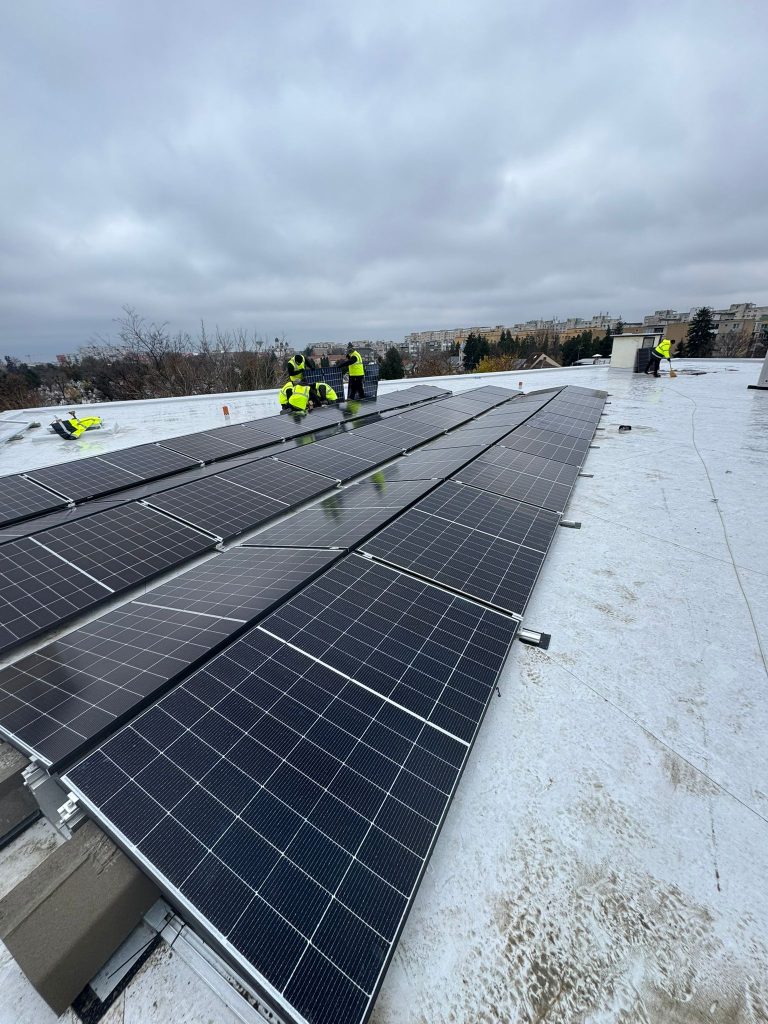 Sistemul finalizat – acoperișul devine o sursă de energie regenerabilă, gata să transforme soarele în electricitate.
