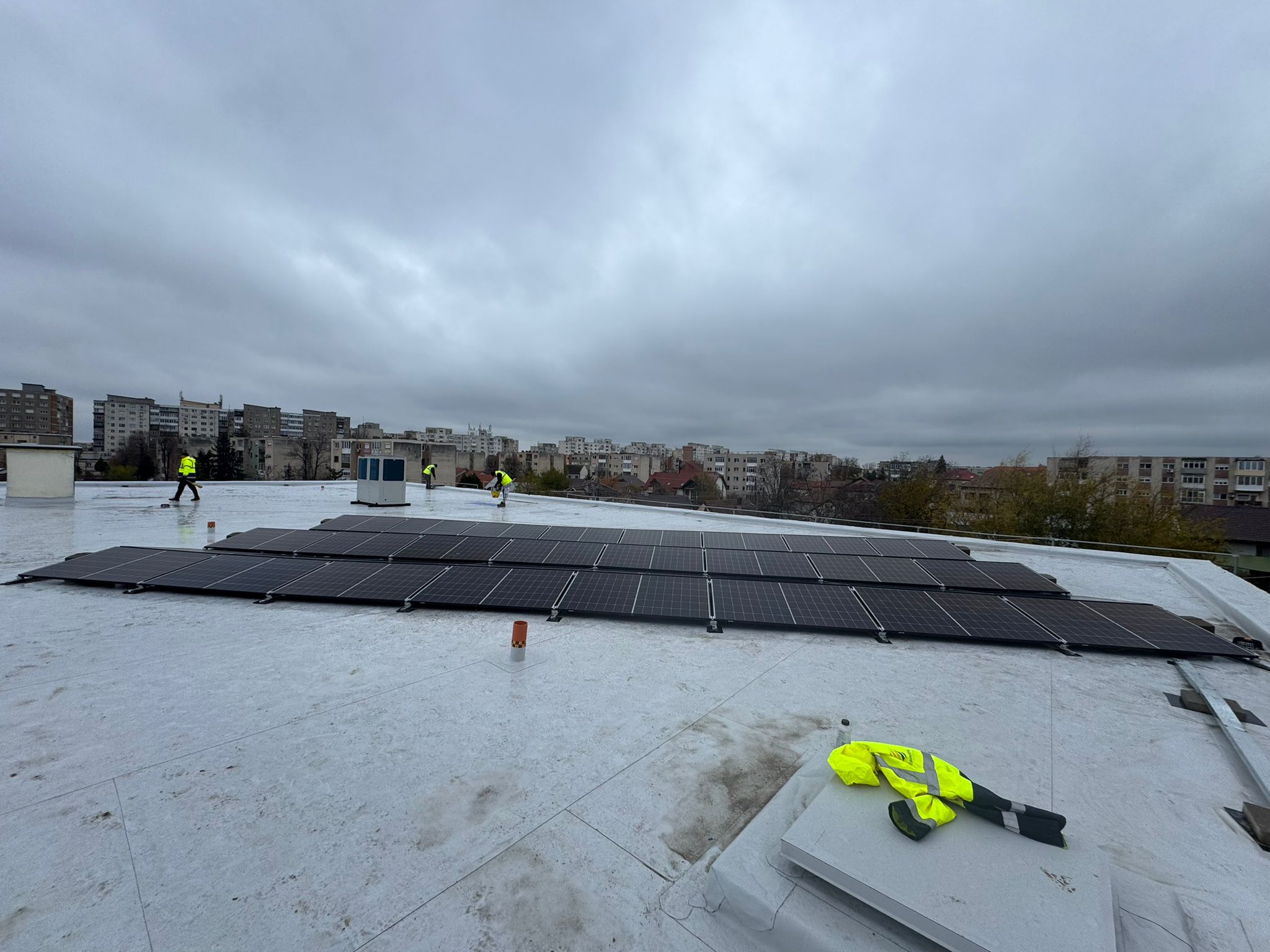 Am surprins două momente cheie din acest proiect fotovoltaic din Arad: